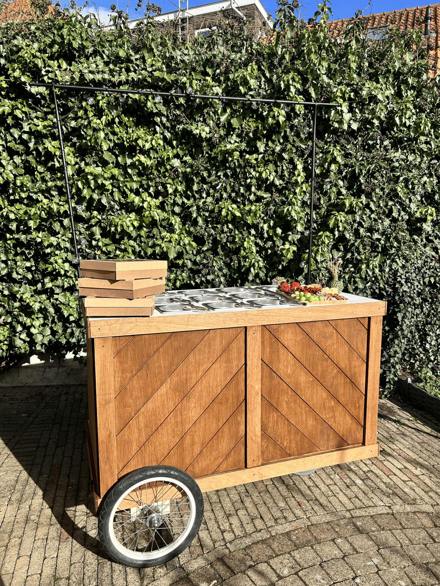 Maak van je evenement een interactieve culinaire ervaring met onze Charcuteriekar! Of gasten nu hun eigen plankjes samenstellen of genieten van een selectie van onze server, deze mobiele kar voegt een vleugje warmte en elegantie toe aan elke bijeenkomst. Ontworpen voor gemak en stijl, brengt de opvouwbare, transporteerbare opstelling de uitnodigende sfeer van de tapas- en wijncultuur waar je het ook nodig hebt. Perfect voor bedrijfsevenementen, feesten en unieke eetervaringen.